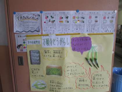 給食室前には,献立や,いろいろな食材の紹介など・・・
