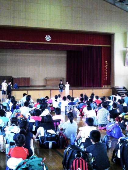 出発式の様子です。リーダーの進行のもと、とても落ち着いて話を聞けていました。