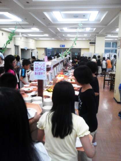 自然の家の食事はバイキングです。八田先生から教わった通り、栄養のバランスを考えて選んでいます。