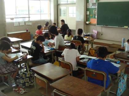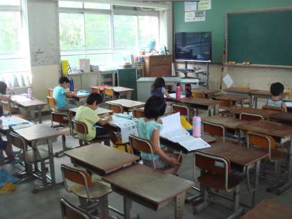 夏休みに入りました。今週は,学習会を行っています。たくさんの子どもが学校に来て,夏休みの宿題に取り組んでいます。分からないところは,先生に聞きながらがんばっています!