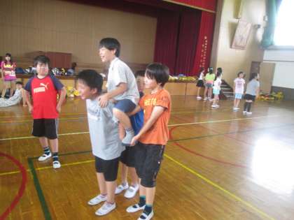 後半は,夏休みのくらしについて,再確認したり,運動会に向けて騎馬を組んでみたりしました。