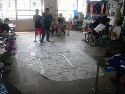 社会の時間に,奈良の大仏の大きさを体験する学習をしました。