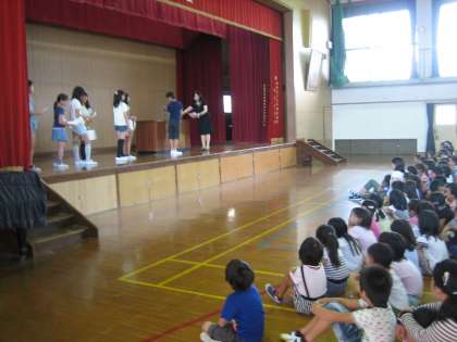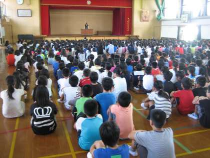 朝会では夏休みに部活動交流会で活躍した子どもたちの表彰も行いました。