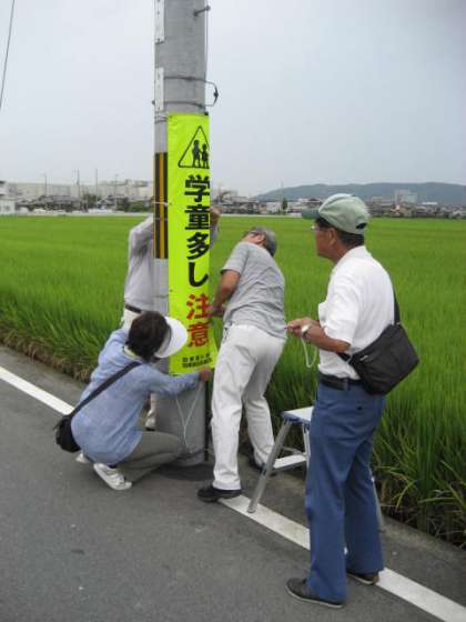 ドライバーの注意を促す電柱幕を10か所 取り付けてくださいました。