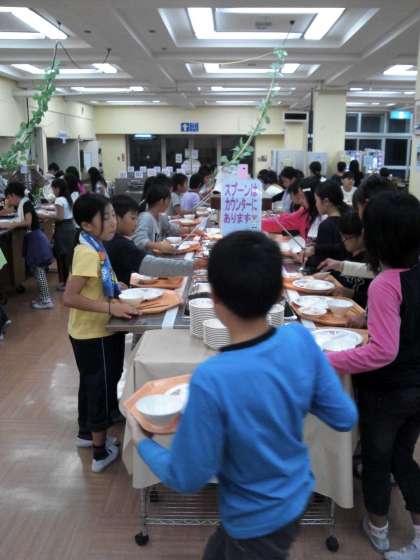 これから、キャンプファイヤーがあるので、しっかり栄養をつけています!
