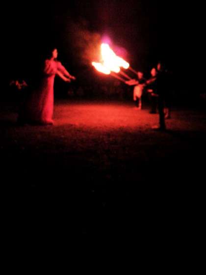 火の神からいただいた火を、4人の火の子が点火しファイヤースタートです!