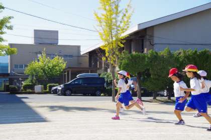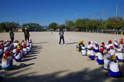運動場で80m走の練習をしました。並び方の確認をしてから,本番と同じようにレーンの前に立ち,ピストルの音を聞いてスタートする練習をしました。