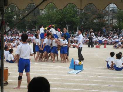 学年の徒競走,たてわり競技や団体演技・団体競技。子どもたちの精一杯の表情が楽しめるプログラムの連続です。