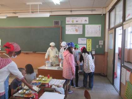 高学年生は,1年生を迎えに行ったり,給食の配膳をしたりとしっかり下学年のお友達をリードしていました。