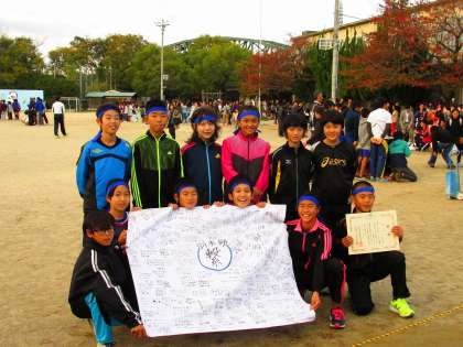 今日は,6年生157人の思い,羽束師小学校全校の思いをたすきに込めて