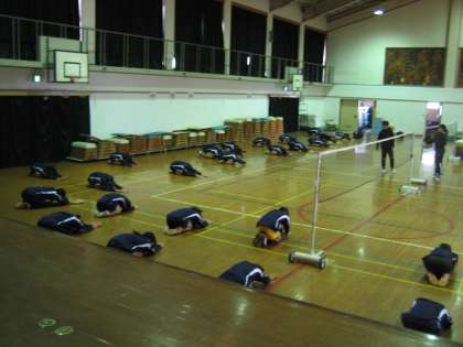開会式のあと,それぞれの部活動ごとにミーティングをして準備運動から始まりました。