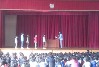12月の朝会では,校長先生から登下校の際には黄帽をしっかりかぶって安全に気を付けることや,人権月間についてのお話がありました。