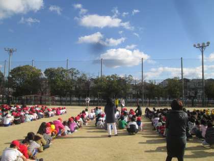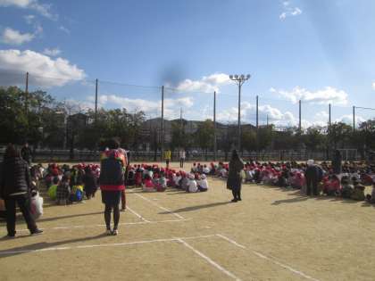 中間休みに起こる地震を想定して,避難訓練がありました。