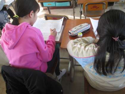 一文字一文字丁寧に確認しながら書いたり,わからない所は調べたりしながら一生懸命取り組んでいました。
