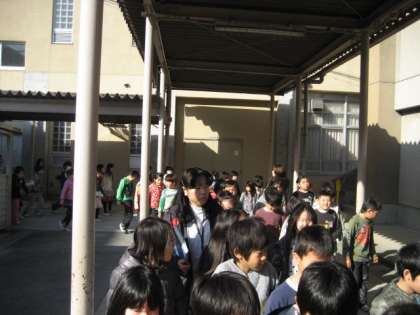 不審者を一室に入れ込んだら,子ども達は体育館に避難します。