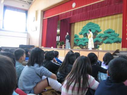 19日,文化庁「文化芸術による子どもの育成事業」として,『萬狂言』の皆様による狂言を鑑賞しました。