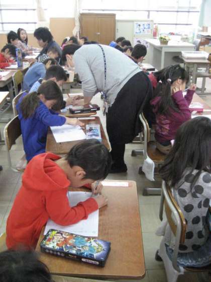 1年は えんぴつの持ち方に気を付けて 線の練習