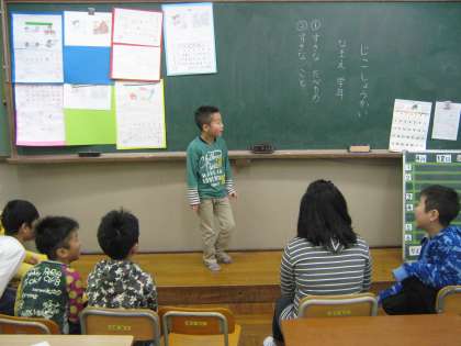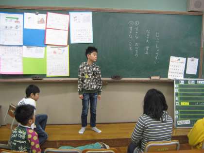 好きな食べ物やすきなことを大きな声で発表できました。