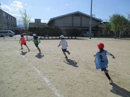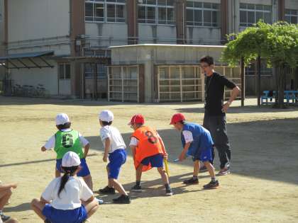 3組と4組で体育をしました。50メートル走やリレーをしました。体育の学習をしながら、クラス交流もでき、素敵な時間をすごすことができました。