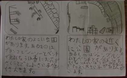 校区内で、自分のお気に入りの場所を「紹介カード」に書いています。
