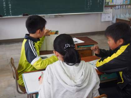 グループ学びでは,自分の考えを友達の考えを比べながら聞き,考えを深められるようにしています。