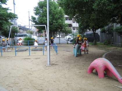 遊具で遊んだり、広い公園ではおにごっこやなわとびなどをしたりして