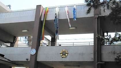 今日から5月です。朝から良いお天気で,今日は気温も高くなると天気予報が伝えていました。羽束師小学校にも,子どもたちの元気な成長を願って,「こいのぼり」が飾られました。