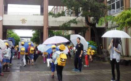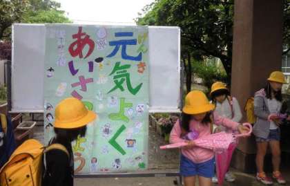 児童会の取組で,代表委員の子どもたちによるあいさつ運動が行われています。今日はあいにくの雨でしたが,校門を入ると子どもたちの大きな声の「おはようございます」の声のシャワーが元気をくれました。登校してきた子どもたちは,まだ恥ずかしそうですがしっかり目を見てあいさつを返しています。