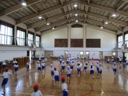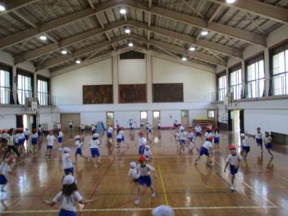 体をいっぱいに使って,体ほぐしの運動をしました。