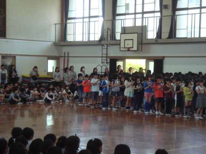 1年生を迎える会で4年生はリコーダーと歌の発表をしました。手拍子をするところでは,1年生も一緒に合わせて手をたたいてくれました。みんなで心を一つにしてがんばりました。