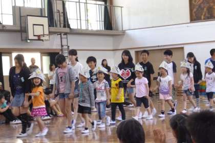1年生を迎える会では,6年生からすてきなかぶとをプレゼントしてもらいました。たくさんの歌や合奏のお礼に,1年生からは「まほうのおまじない」」の歌を元気いっぱい歌いました。