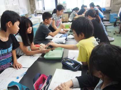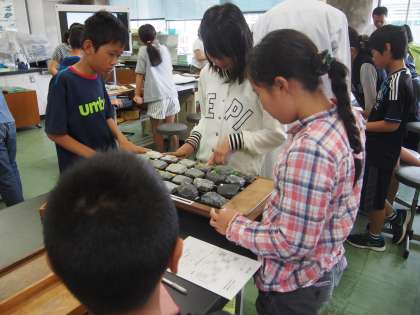 4組は「緑色岩はどんな石?」ということで地学の学習をしました。