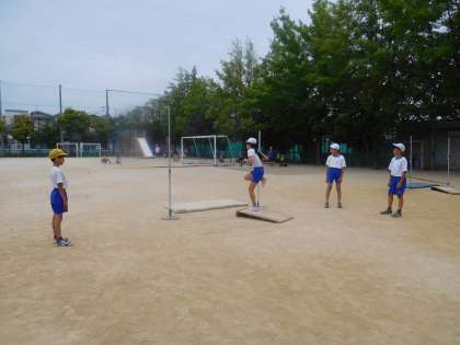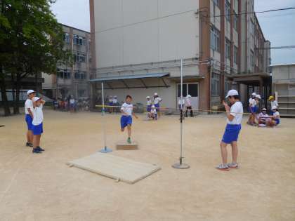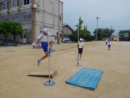 自分の踏み切り足を確かめ,助走の歩数を意識してとびました。