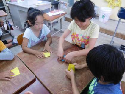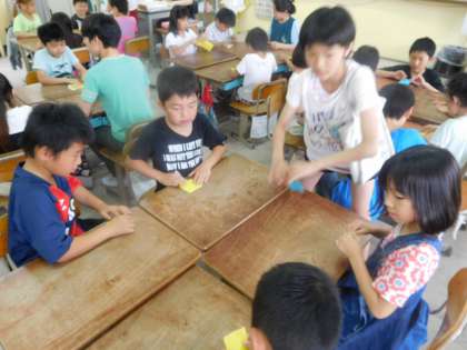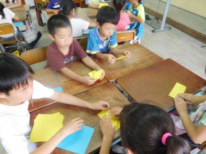 鶴の折り方を教える姿は,やさしくお兄さんお姉さんの顔でした。