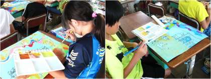 手前にあるものは濃く,遠くにあるものはうすく塗ることで立体感が出るように工夫しています。