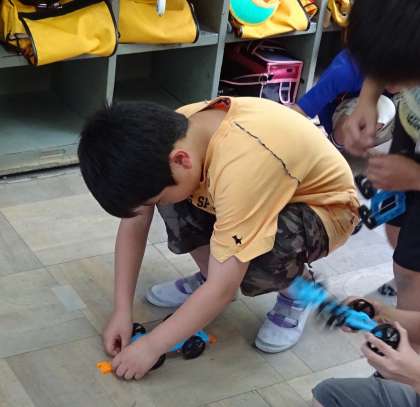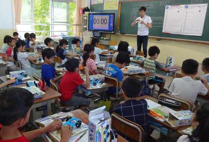 「ゴムや風でものを動かそう」では,ゴムで動く車を作って実験をしています。
