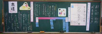 土曜参観の2時間目に資料「絵葉書と切手」をもとに話し合いました。