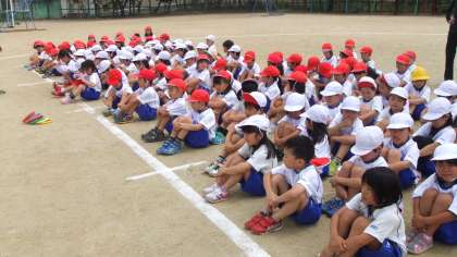 各クラス8人ずつのグループでクラス対抗リレーを楽しみました。どのクラスも勝ったり負けたりしましたが,一生懸命走り,一生懸命応援し,学習が終わったときにはみんなとてもいい顔をしていました。