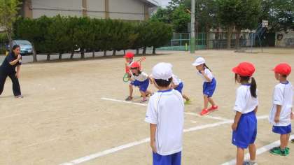 水曜日の体育の時間に1年生みんなでリレー大会をしました。