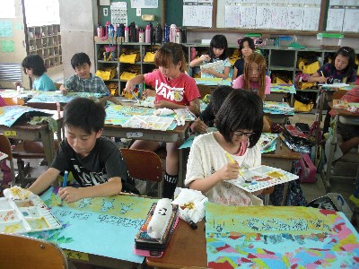 図工は,心にのこっている運動場のシーンをテーマにして絵を描いています。