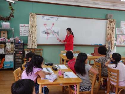 栄養教諭の八田先生による授業がありました。今日学んだことを次に魚を食べるときに生かせるといいですね。ツナサンドもシチューもとってもおいしく食べられました。