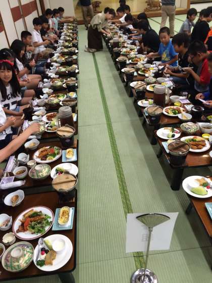 みんな元気にホテルに入りました。これから夕食です。どれから食べようかなぁとわくわくしています。