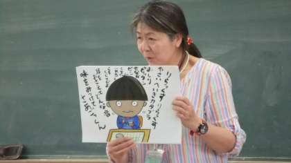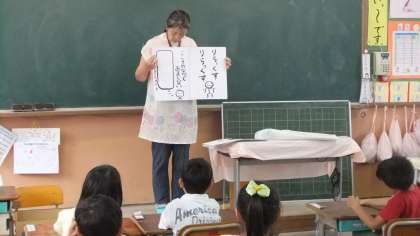 ランチルーム給食の前に,栄養教諭の八田先生から「まほうのたべかた」の紙芝居を読んでいただきました。
