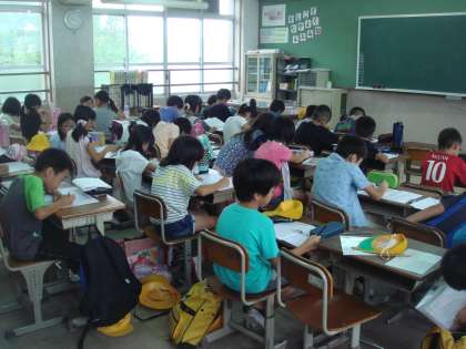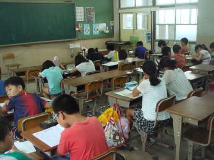 今週から夏休みが始まりました。今日は,4年生は学習会を行いました。たくさんの子どもたちが参加して,集中して学習に取り組みました。