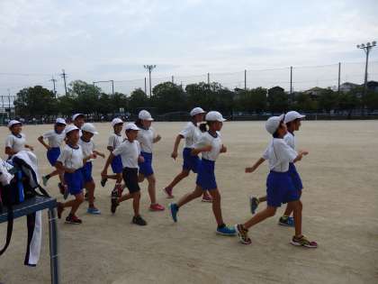 8月2日(火)に神川小学校の陸上部が羽束師まできて,合同練習を行いました。いつもとはちがうライバルの存在に,良い緊張感をもって練習することができました。