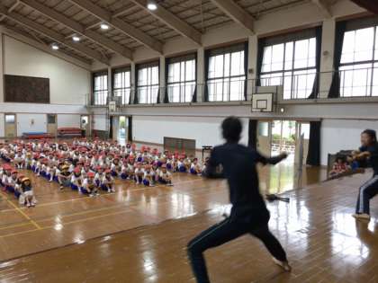 子ども達は気合十分で腰をしっかりと落として練習していました。