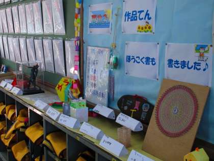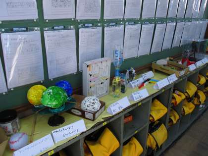 ロッカーの上や側面掲示には、力作がならんでいます。