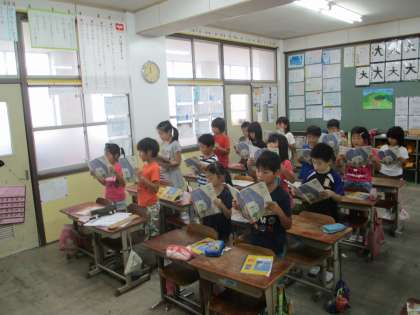 国語の学習では,金子みすずの「わたしと小鳥とすずと」を音読して,心に残った言葉や,「いいな。」と思ったところを話し合いました。