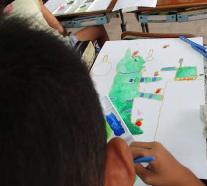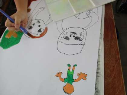 を読んでお話の絵をかいています。
