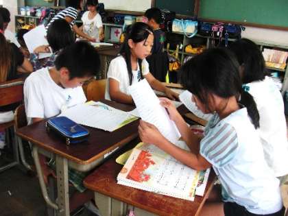 ロックソーラン節の入場の際に使う旗に,クラスで決めた四字熟語を書きます。